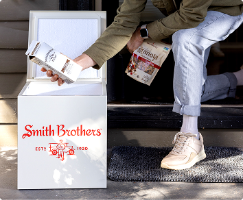 A: Each week, a dedicated Smith Brothers milkman or woman delivers your order to your doorstep in an insulated porchbox. Most families stick to a regular schedule, and many know their delivery driver by name. You can customize your order until 2:00pm the day before your delivery.